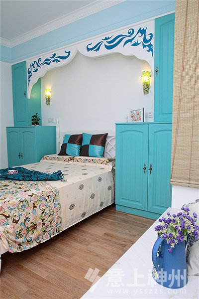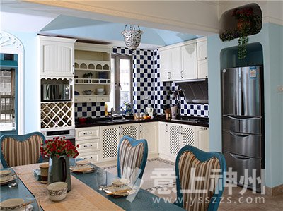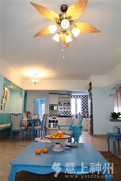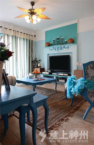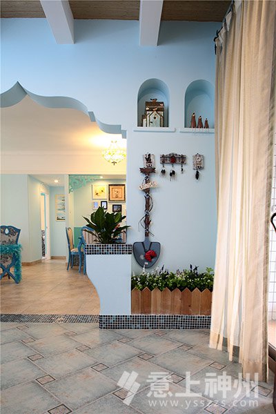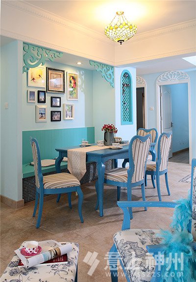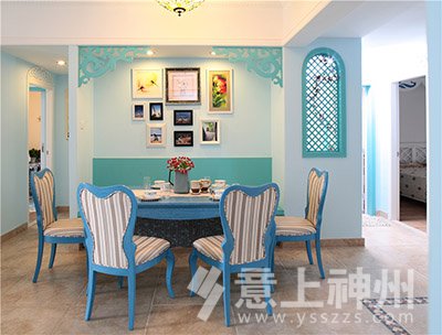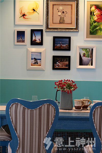藍與白的色彩搭配,選擇空曠處做成了充滿愛意的照片墻,寧靜不失溫馨。地中海裝修風格—意上神州裝飾