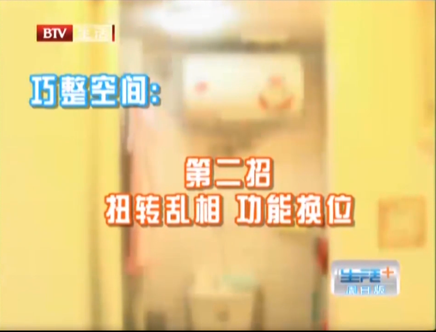 巧整空間:第一招 一分為二 高效組合 首先把您家的這個(gè)沙發(fā),電視柜,還有餐桌先請走,在主臥門柜的位置,切一個(gè)隔斷墻,采用這種半通透性 的材質(zhì),把咱們這個(gè)空間,分成兩部分,靠邊陽臺的這個(gè)部分,是咱們的臥室,這個(gè)高效組合,主要是講功能上的高效組合,第一是咱們在次臥區(qū)域,可以放1.5米的床,解決了這個(gè)睡覺這個(gè)功能,第二利用這個(gè)陽臺,搭一個(gè)地臺起來,在北面這面墻,可以做一個(gè)通頂?shù)墓褡,那么這個(gè)柜子加上這個(gè)地臺,儲物的問題就得到解決了,第三功能,搭起地臺以后,在地臺上可以擺一個(gè)小桌子,當(dāng)一個(gè)書桌用,第四個(gè)功能,平時(shí)可能家里來人了,地方平時(shí)可以臨時(shí)的作為一個(gè)休閑區(qū)域,剛才您說的衛(wèi)生間手盆的問題,怎么解決呢?